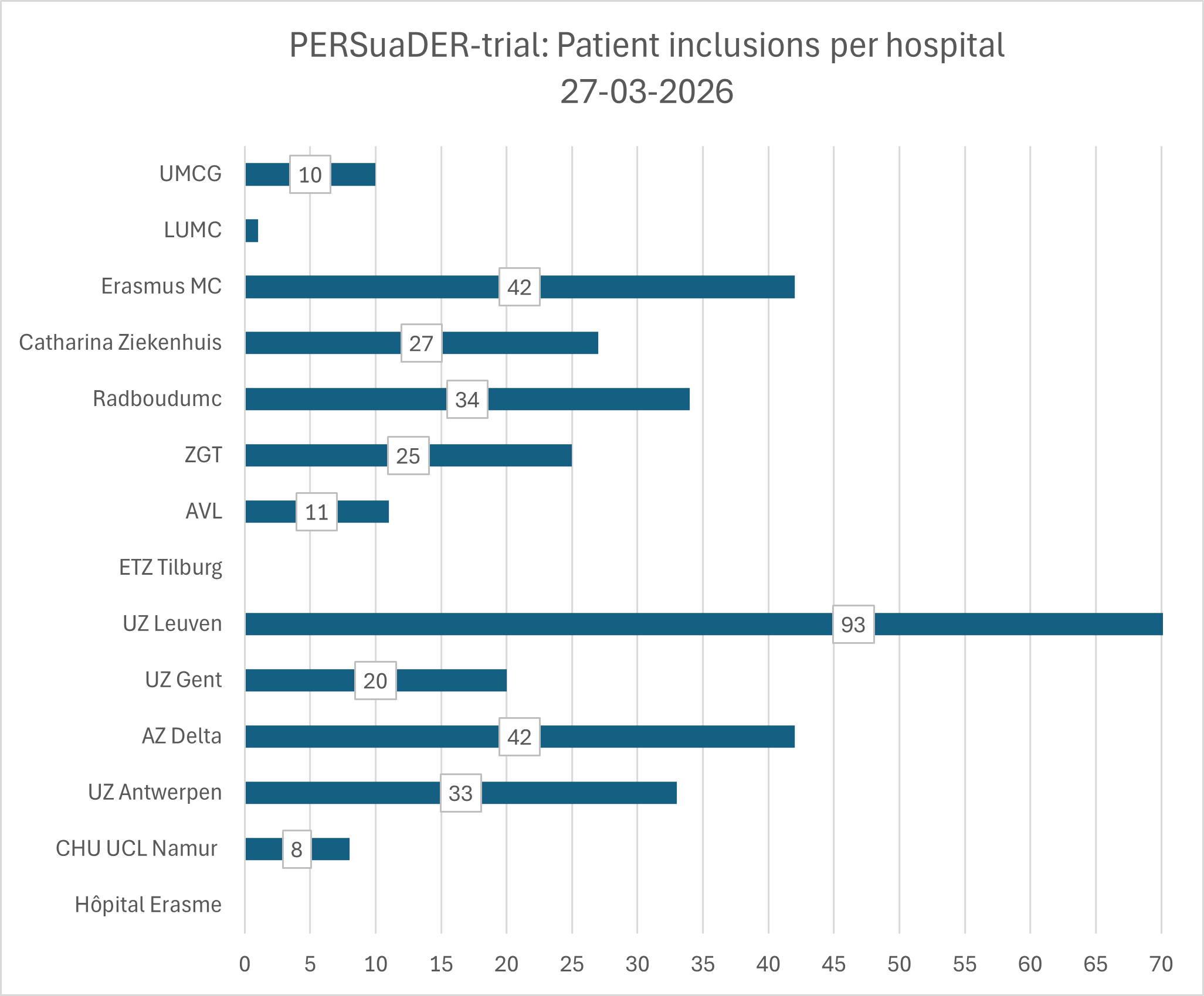 Deze pragmatische, gerandomiseerde, gecontroleerde studie is georganiseerd in een multicentrische, binationale opzet. In totaal nemen 16 Nederlandse en Belgische centra deel aan dit wetenschappelijk project dat gesponsord is door ZonMw en KCE.